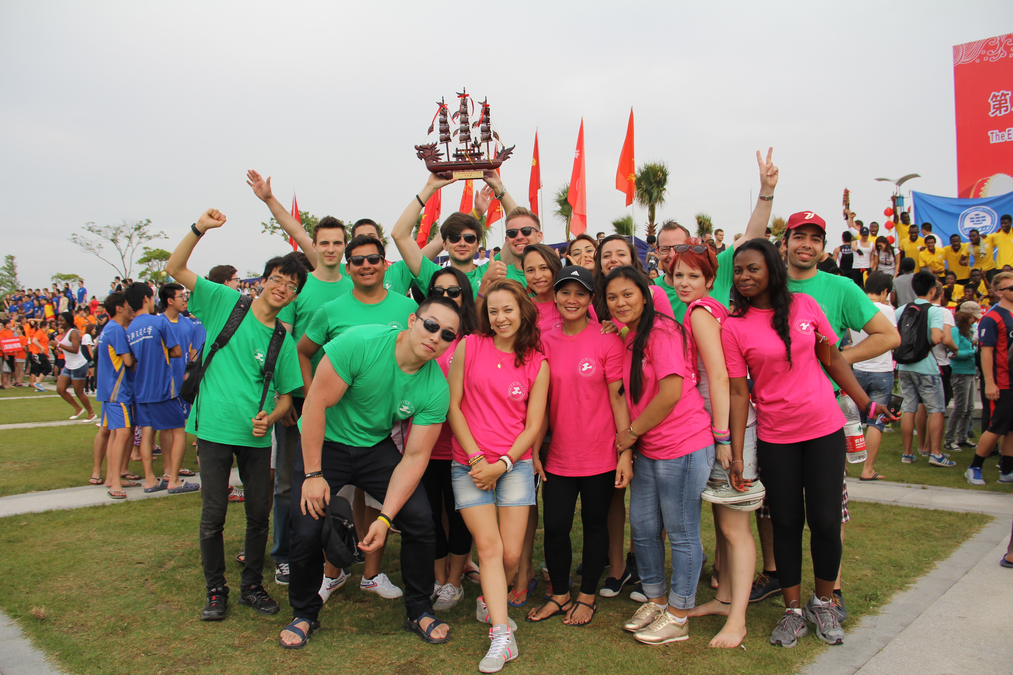 我校国际交流处对外文化教育交流中心组织了一支20人的留学生队伍,在我校体育部专业教师指导下参加了此项赛事。龙舟赛不仅加深了留学生对中国节日文化的理解,更提供了一个与上海各高校留学生交流切磋的平台。在赛场上我校留学生们奋勇拼搏,赛出了团结一致、坚持到底的风采。上海市教委分管副主任莅临现场并与我校留学生合影留念。