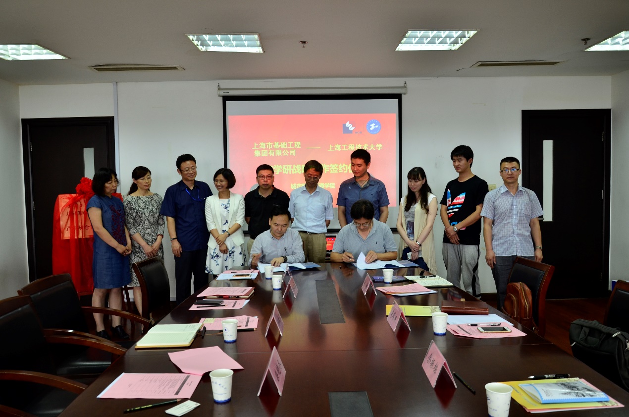 上海市基础工程集团有限公司前身是丹麦商人于1919年创办的康益洋行,1953年收归国有,现为上海建工集团股份有限公司全资子公司。公司业务涵盖深桩基础、沉箱、桥梁、地下顶管、隧道盾构、沉井、地下围护结构、桩基、水工港口等。近年来公司承建了大批知名度大、标志性强、科技含量高的重大工程,一批工程和科研项目荣获国际、国家、市(部)级奖项,多项施工技术处于国内领先、世界前沿水平,在国内外建筑行业享有较高的声誉;被上海市首家特色命名为“建设铁军”,荣获全国“五一”劳动奖状,建设部、上海市文明单位等称号。本次产学研战略合作协议和产学合作教育基地协议的签订,对促进我院就业市场的开拓,提升学院特别是交通工程专业在行业的影响力起到积极作用。