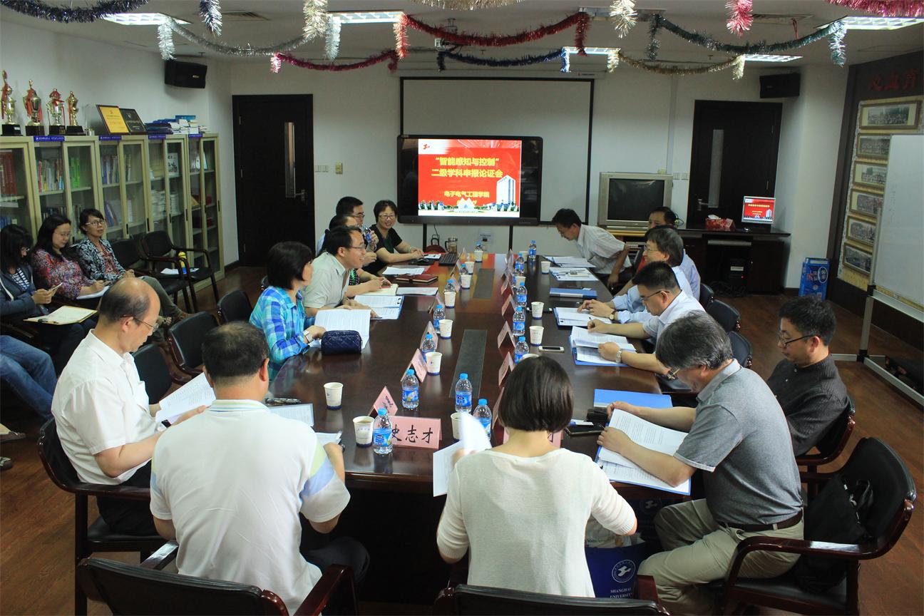 为申报机械工程目录外二级学科,6月19日下午,电子电气工程学院在行政楼912室召开了“智能感知与控制”二级学科申报论证会。来自华盛顿大学、上海交通大学、华东理工大学、东华大学和上海大学等7位校外专家和领导应邀出席了会议。校研究生处相关人员参与了此次会议。会议由电子电气工程学院方志军教授主持。