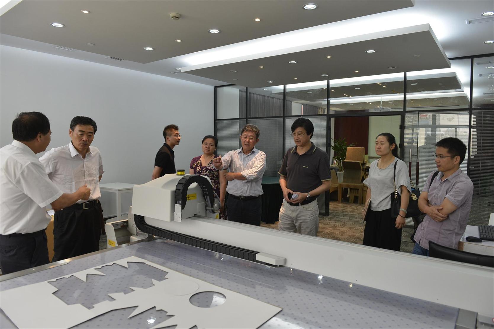 最先来到的是五星合作企业——上海界龙实业集团有限公司,学院党政领导与副总裁任端正畅谈了校企合作的广阔前景,并达成了多项具体合作共识。企业技术中心副主任对学院学生在实习中的表现给予了表扬,当看到曾作为国礼被赠予美国总统奥巴马的09届校友设计作品时,老师们更感到欣慰。