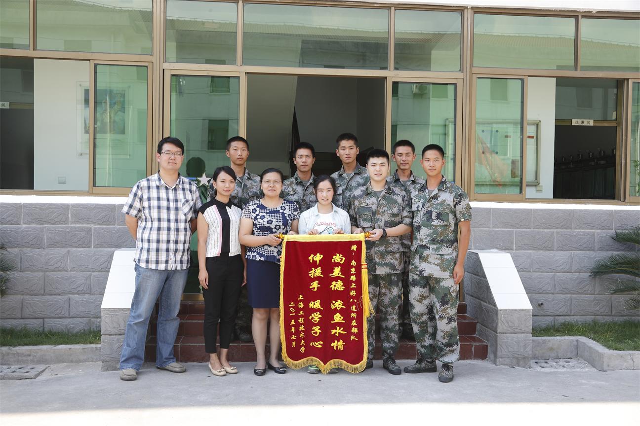 慰问座谈过程中,团部政治处领导以及连队领导高度赞扬了我校入伍学生在各项训练工作中的优异表现以及扎实、稳定的作风,不怕苦、不怕累,在平凡的工作岗位上履行着军人的神圣职责。李云先老师向部队介绍了陆雨芨拿出自己仅有的每月600元津贴,通过学院牵头资助学院困难大学生每年6000元,连续资助四年的益举,同时为部队送上锦旗感谢部队培养出的优秀战士。小陆的举动通过媒体报道后,在学院内、校友间产生了很大的反响,南京路上好八连的精神在其身上体现的淋漓尽致。
