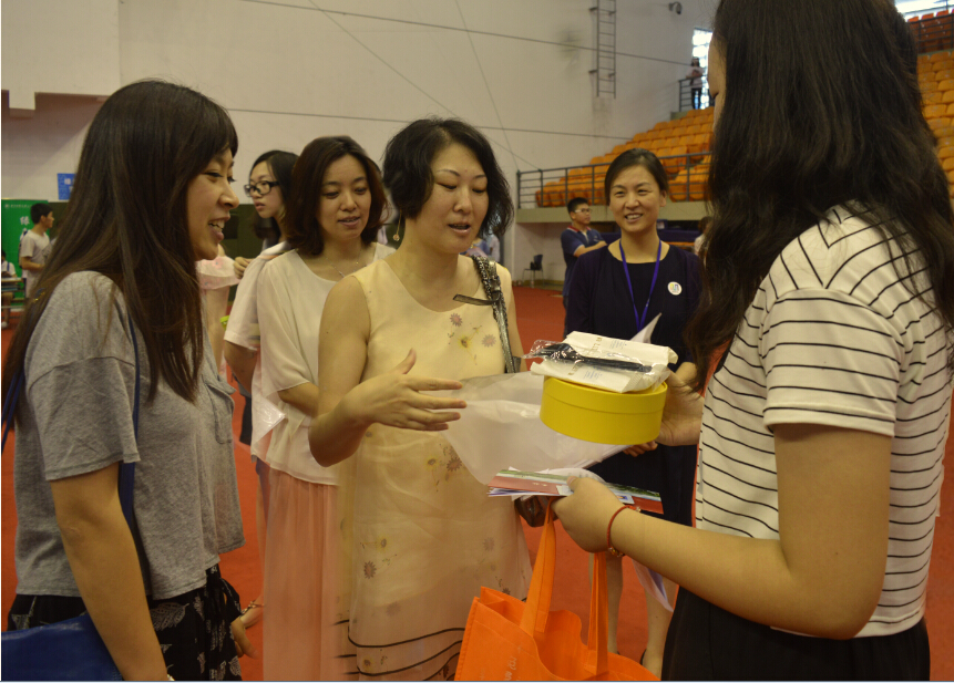 9月2日,在校体育馆新生报到现场,服装学院服装营销系新生韦琳收获了一份意外的惊喜,当天是她的生日,她的导师唐新玲老师为她准备了一个生日蛋糕,正在体育馆看望新生的校党委副书记兼副校长裴小倩和服装学院党委书记袁蓉也向韦琳同学表达了祝福。韦琳同学十分感谢校领导、学院领导和导师的关心,她希望能在导师指导下,充实的过好大学每一天。