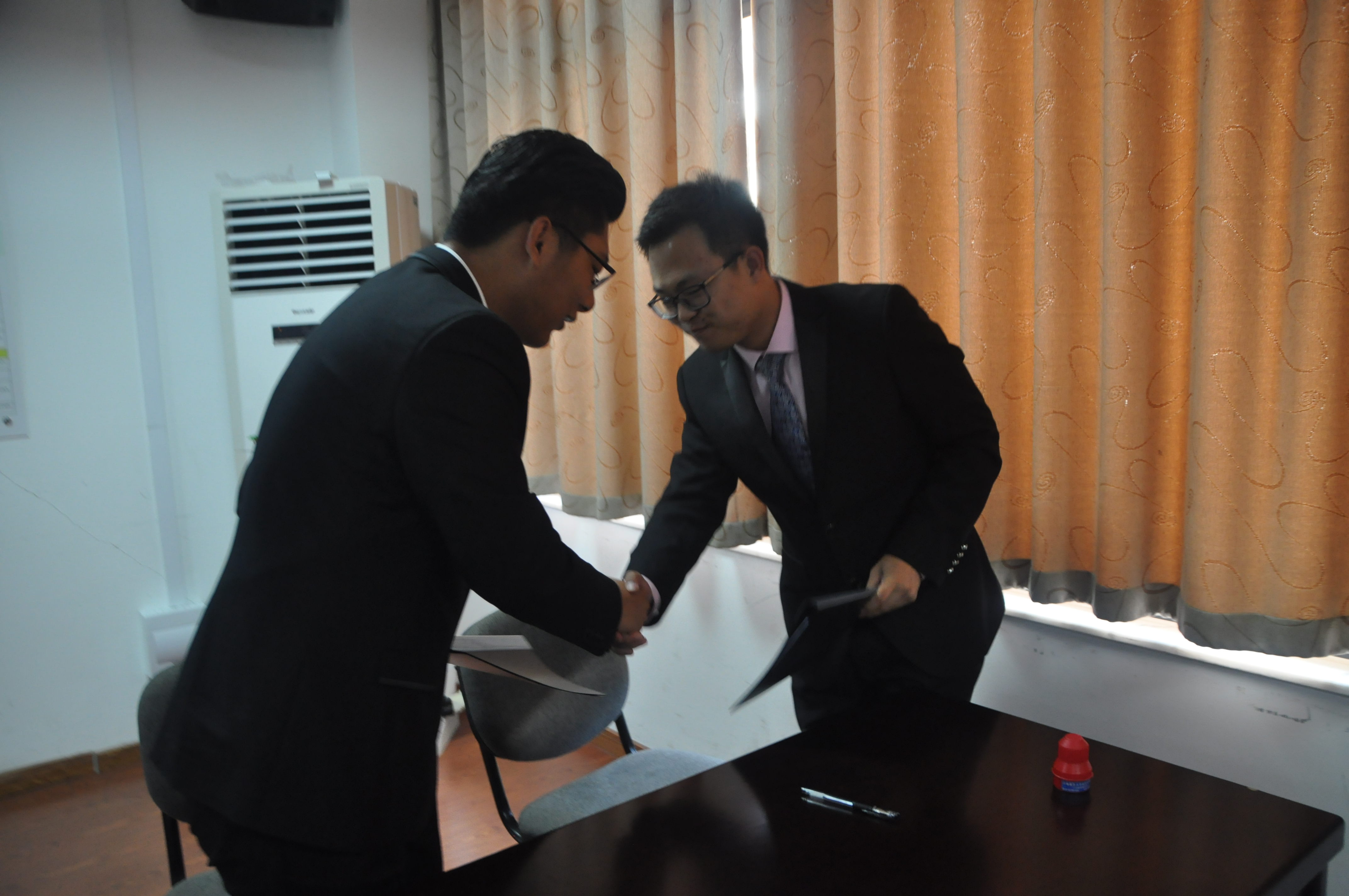 成立仪式上,两位分团委书记高度肯定了此次成立仪式的重要性,对两院学生会的合作与交流充满期待和信心,并对此次交流大会做出了有效的指导。随后,东华大学材料学院学生会主席曲智作为代表发言,工作人员宣读合作草案后,与会人员对于草案进行了热烈的讨论,讨论通过十一项合作领域(学生会基础建设、共青团基础建设、新媒体平台建设、科技学术活动、志愿者活动、公关外联、素质拓展等),确定三大合作内容要点(定期组织开展交流大会、联合开展校际合作项目、分团委学生会资源共享),最终通过并确立了该协议。东华大学材料学院学生会主席曲智与我校材料学院学生会主席程龙签订了协议,标志着两校材料学院合作关系的正式确立。