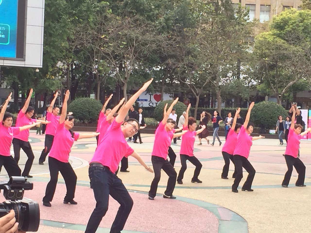 活动现场,中法埃菲时装设计师学院的社会公益志愿者们和自上海广播电视台电视新闻中心的主持人何婕、臧熹同台跳起活泼、律动的健骨操,吸引了大批市民驻足观看。主题曲主唱的同学们也以朗朗上口的歌曲,清晰的说唱,向现场向市民宣传预防骨质疏方法。得到现场市民的阵阵掌声。