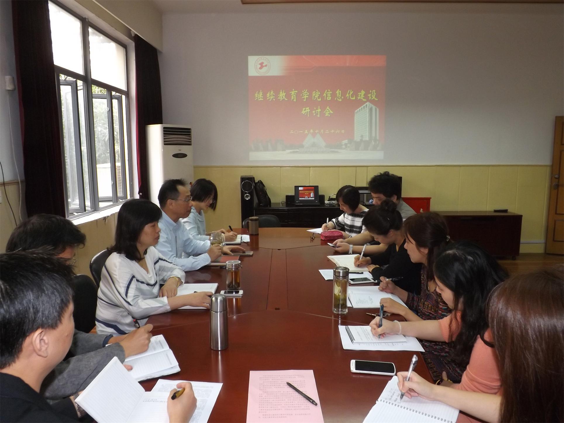 姚黎明院长首先说明信息化建设对于继续教育的紧迫性,尤其是网络课程的开发迫在眉睫。希望大家能够结合自身的工作情况畅所欲言,为学院的信息化建设谏言献策,深入讨论。随后,各部门根据实际工作中遇到的问题提出意见和建议。夜大学提出要增加外网服务器功能的集中性,要提高“天空教室”的使用率,也要将部分申请从纸质改到网络,方便使用和保存。自考办提出要通过一系列的改进措施提升自考信息化工作必须的硬件保障、软件保障和人员保障,以及试卷保密室的门禁升级系统。培训部提议学院的网页要结合宣传、咨询、报名、互动和课件等多方面内容,完善网页的整体性和便捷性;也建议利用微信公众号来推广宣传。计算中心提出网络学校的设想,以及建议更新已经使用超过十年的计算机。最后,胡建平副院长提出要建立一个学院的综合业务管理系统,使学院各部门之间的具体工作沟通方便高效。她还强调要仔细梳理相关工作流程,增加责任心,确保信息安全。