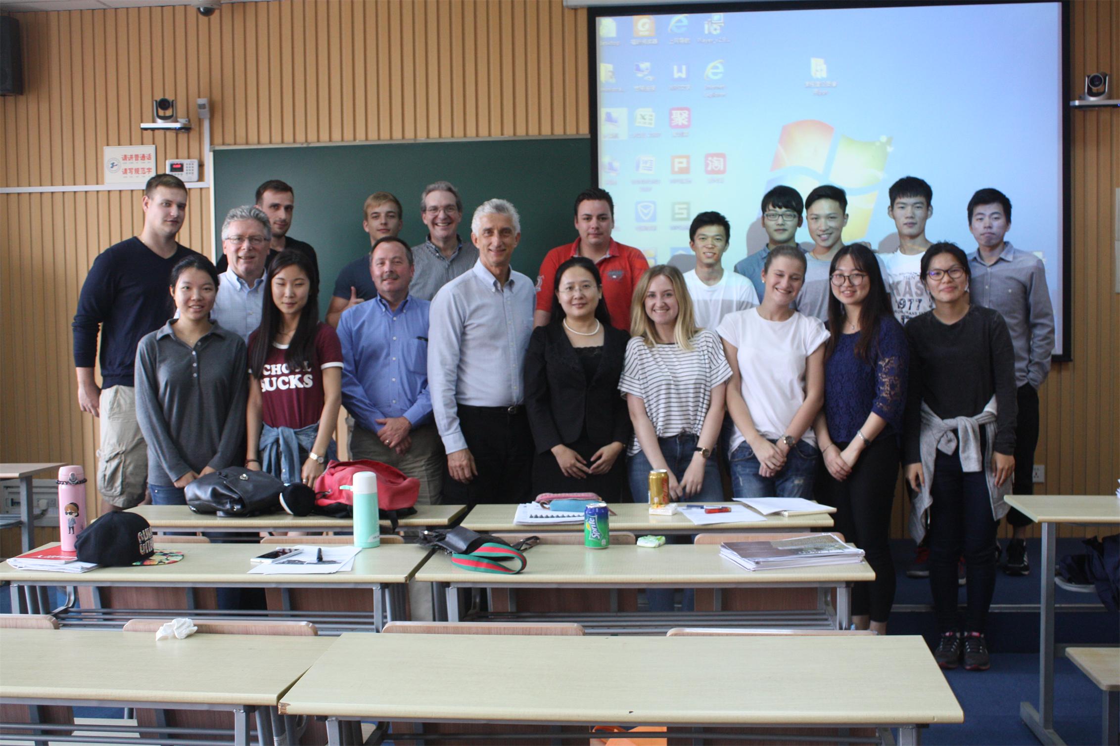 在授课中,美国企业家以在管理实践中构建成功的领导为例,通过多角度,多实例的方式,讲解了服务型领导原则在现代美国企业中的实践和应用。四位企业家有着二十年以上高层管理经验,他们分别从正直(Integrity)、勇气(Courage)、纪律(Discipline)、忠诚(Loyalty)、承诺(Commitment)、谦逊(Humility)、负责(Responsible)七方面论述服务型领导视角下成功领导模式的构建与执行,并同课程中的中国学生和德国学生进行了跨国背景下,领导力在中、美、德三国应用中的差异的讨论。通过学生互动、案例分析、情景模拟等多种方式再现了领导力在国际企业实践中的构建和提升的方式、方法,丰富了该课程的教学方式。