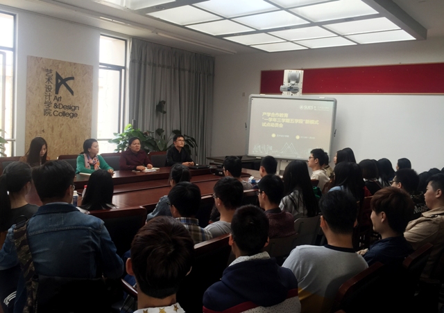 会上,艺术设计学院产学合作教育辅导员崔俊首先对“一年三学期五学段,工学交融”新模式进行了讲解,即参加试点的学生可根据专业特点和课程安排,改变集中在暑期进行产学合作教育的模式,将合作教育提前到本学期的后半学期,每周集中两天在学校完成课程学习,其余时间以“职业人”身份在校外参加定岗工作。接着向参加本次试点工作的两个班级同学介绍了工作学段时间、协调员分配情况和合作教育工作时间节点与质量要求。