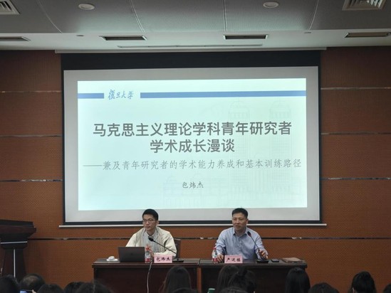 包炜杰就“成长规划、学科动态与选题撰稿”三个层面展开讲授。在研究方法层面,包老师分享了马克思主义理论学习路径,阐述“术”与“道”的关系,并推荐文本研究、思想史研究等方法,强调从马克思主义经典著作中汲取养分;选题方面,建议聚焦马克思主义基础理论的当代阐释等方向,遵循聚焦、文本、比较原则,并结合自身研究实例说明选题与研究开展方式。互动环节,包炜杰副教授解答青年学者研究困惑,促进学术思想交流。