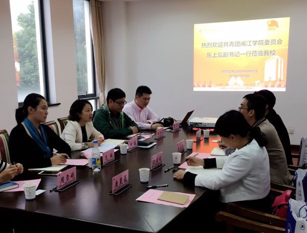 近日,福建闽江学院团委副书记乐上泓一行来我校交流并调研共青团工作。团委书记朱蓓携团委全体成员接待了来访客人。