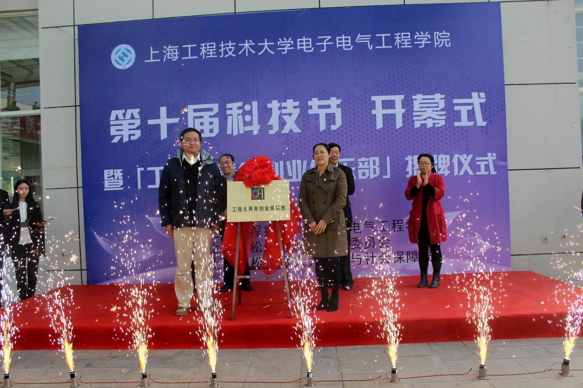 11月14日,电子电气工程学院第十届科技节开幕式暨“工程大青年创业俱乐部”揭牌仪式在大食堂广场举办。松江区科学技术委员会副主任张磊,松江区人力资源与社会保障局副主任盛青,电子电气工程学院院长方志军,党委书记茅蕾,党委副书记秦颖,副院长张莉萍参加了开幕式。