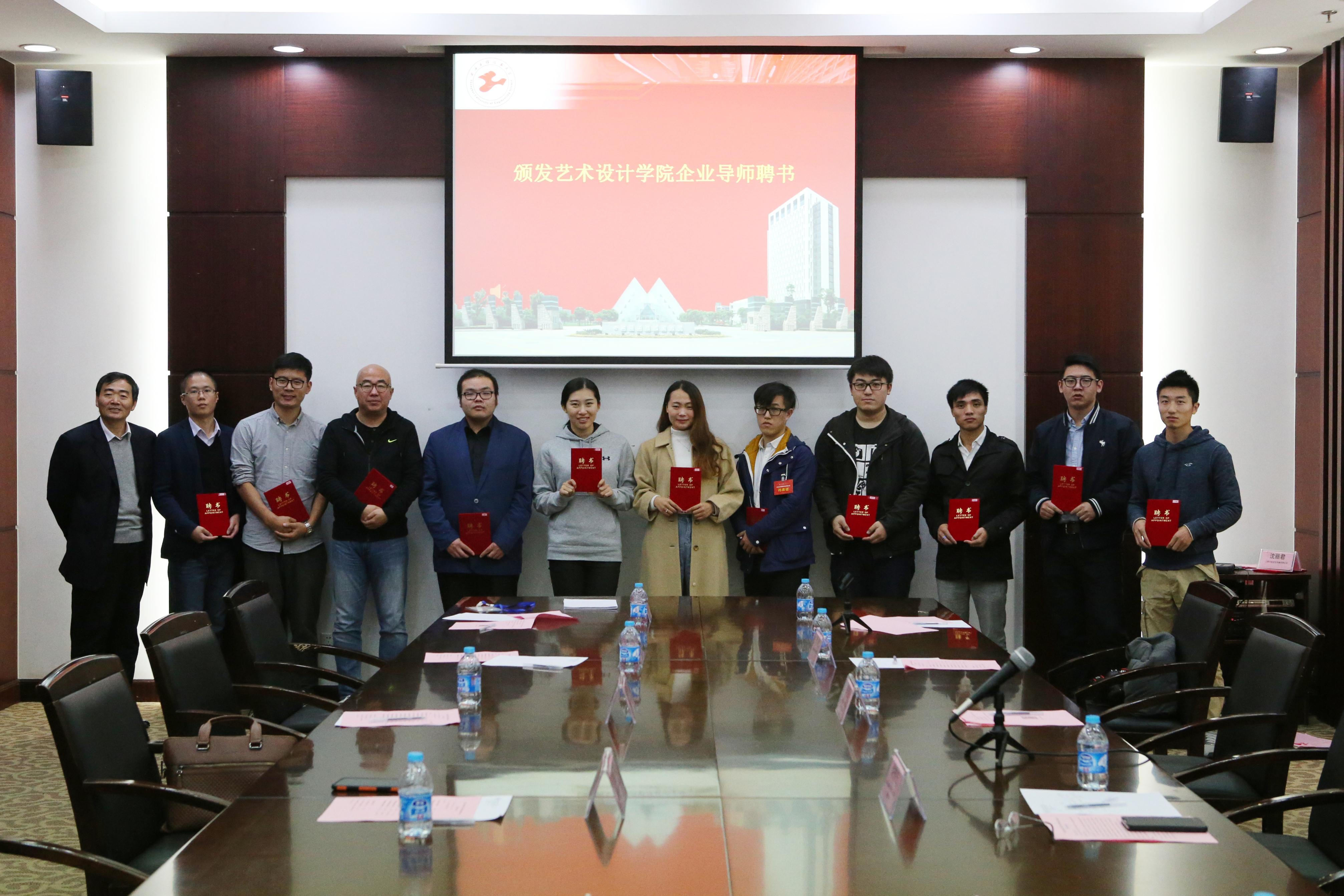 接着,与会嘉宾介绍了各自创办企业情况。随后,进行了艺术设计学院企业导师聘书颁发仪式。艺术设计学院党总支书记许传宏与校友分会会员代表龚弢先生为创业校友分会揭牌。