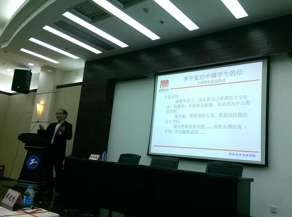 校友王力生教授通过“李开复给中国同学的信”主题展开话题,为大家讲解大学四年应该如何度过。他鼓励我校大学生应当根据自己的兴趣,有选择性的学习,培养自己的自学能力。王教授认为,大学学习中老师只是一个引导,真正的修行全靠个人在课余时间的学习。他强调,当代大学生应该在确保高效率的情况下,在正确的时间做正确的事,不要错位。