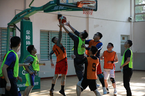 在技能类社团大放异彩之时,体育馆内也是热闹非凡,校友篮球友谊比赛在体育馆内如火如荼地进行。不少校友也为这种气氛所感染,跃跃欲试。