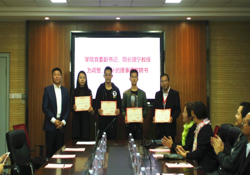 本次校友理事会审议通过了调整和增补学院理事会成员建议名单,胡宁院长为增补与调整的理事颁发了聘书。党委副书记、院校长胡宁在讲话时,向来自各地的校友表示热烈欢迎,对校友们长期以来支持母校发展表示感谢,希望校友们献计献策共同谋划好40周年校庆活动,能够常回家看看,分享经验、共享成果,关心支持母校的发展。学院副院长吴训成宣读了“高职学院社会实践导师”聘请决定,学院副院长郑卫为“高职学院社会实践导师”颁发聘书,学院党委副书记李云先汇报本学年校友工作情况。
