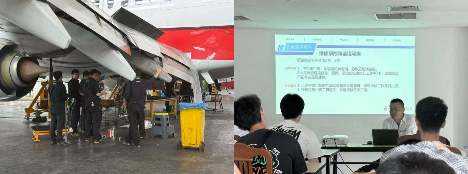 通过两年的专业课学习,大二学生已经基本掌握了理论知识,此次实践学习,同学们走到产业一线。飞行器制造工程专业学生赴东方航空技术公司进行了为期三周的专业实习,实习采用“课堂前沿启智+ 岗位现场淬炼”的双模块设计,成效显著。在校内理论培训阶段,邀请企业资深工程师进入课堂,强化民航维修作风建设,引导学生深刻理解“安全第一、预防为主”的铁律以及“严谨、专业、诚信、责任”的职业内核,为其树立牢固的规章意识和职业道德观;同时,深入讲解AMM、IPC、WDM等飞机关键维修手册的架构、编码规则与规范查询流程,有效弥合了教材理论与企业标准化作业之间的鸿沟;引入民航维修先进无损检测、预测性维护(PHM)等前沿理念和先进技术,极大地拓展了学生的行业视野,使其感受到智能化、数字化浪潮下行业发展的脉动。