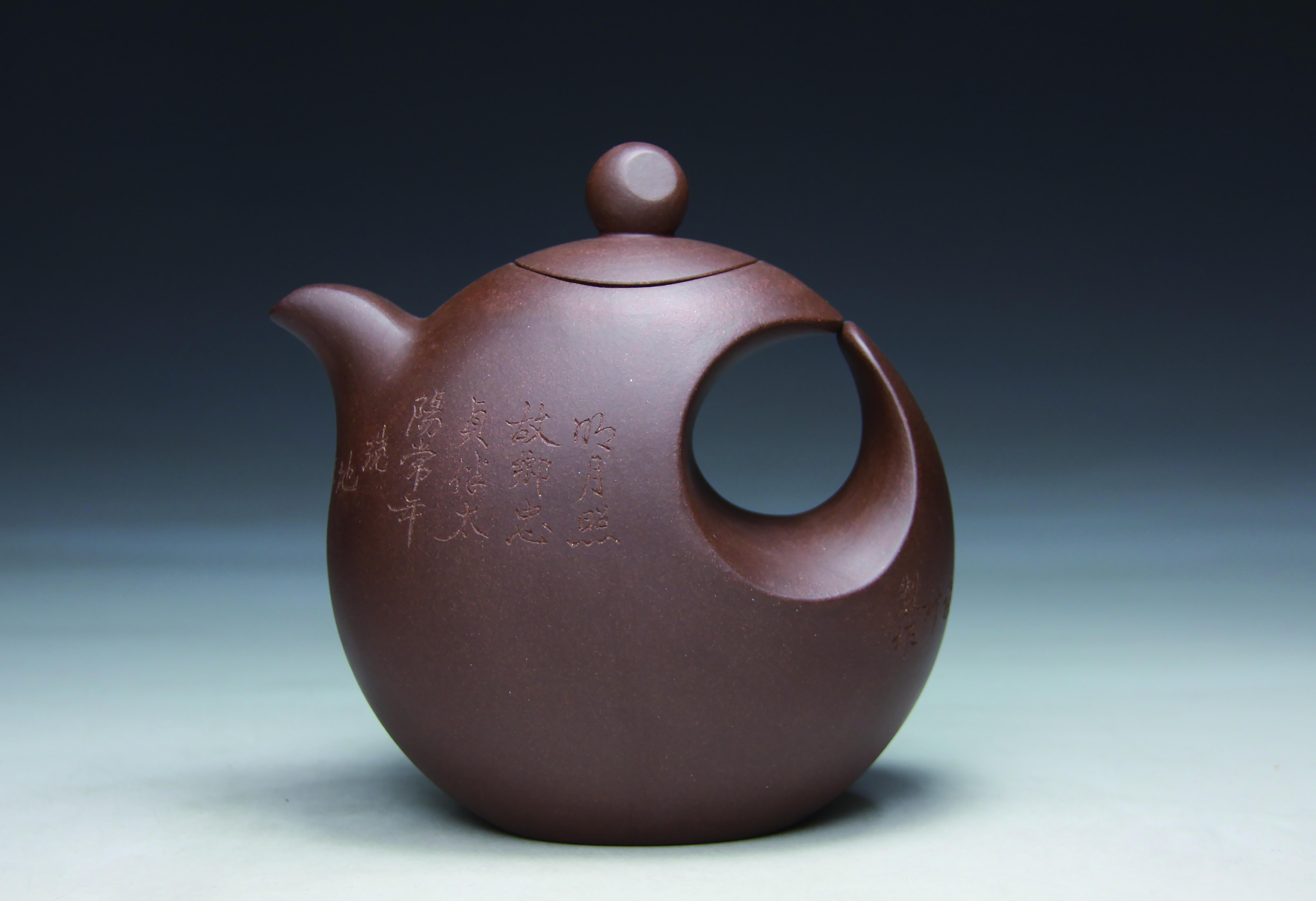 该同学新近创作的“望月壶”,作品选“月亮”为题,进行构思造型,融合了传统意境和现代陶艺风格,以月相望朔圆缺变化构思造型表达。从月初的蛾眉月(弯月),到月半的望月(满月)之形态变化而设计,借以祝愿和祈福,故取名《望月壶》,荣获上海第十六届中国工艺美术大师精品展金奖。