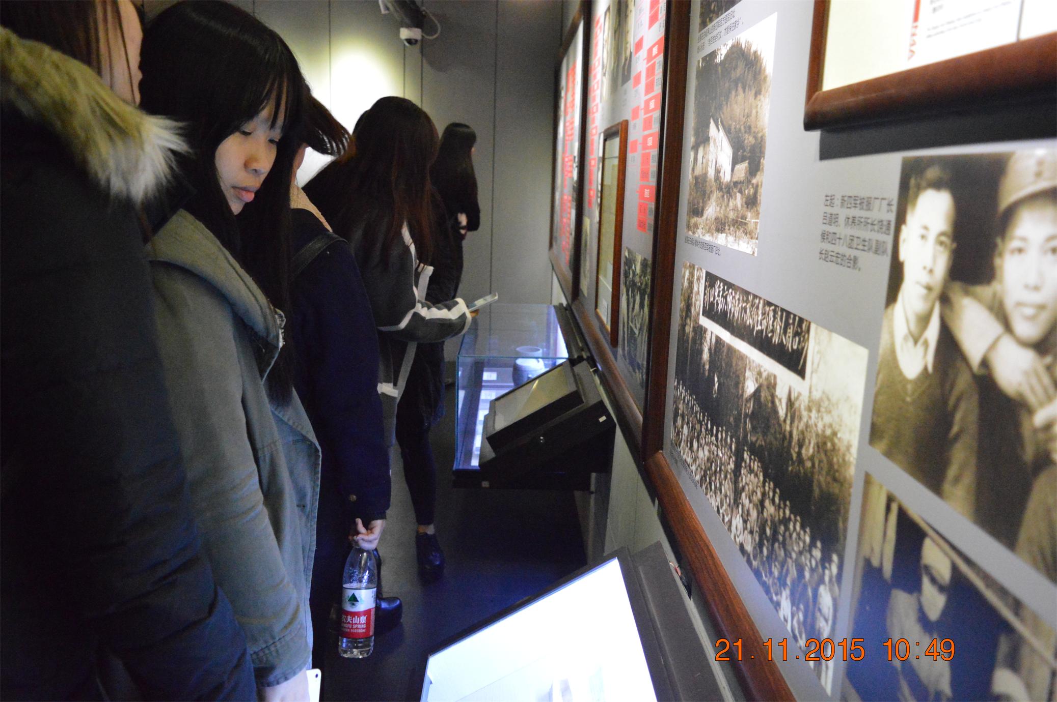第一站,师生来到了新四军苏浙军区旧址。进门便是新四军纪念碑,气势恢宏,一下子就激发了师生的爱国热情,纷纷前去合影留念。馆内展现了各种各样的历史信息,有的甚至还展出了许多实物。在馆的左侧,一块墓碑静静的矗立在大地上,这便是粟裕将军的墓碑。活着的时候,他为了祖国和人民与侵略者斗争,死后他长眠于祖国大地,永远守卫着祖国热土。这些饱经沧桑的历史文物,令人悲怆的将军墓碑,见证了历史的发展,也深深震撼了师生。同学们静静的感受着祖国那段黑暗的日子,感悟着那些斗争的年代,为那些为了祖国和人民付出艰辛的努力和生命代价的英雄感动和感恩。同学们的爱国热情极大的被激发,都深深的感悟着。