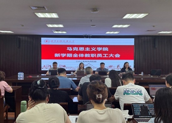 为全面部署新学期重点工作,凝聚奋进力量,9月5日下午,马克思主义学院在行政楼506室召开新学期全体教职工大会,学院领导班子成员及全体教职工参加会议。会议由学院党委书记董旖旎主持。