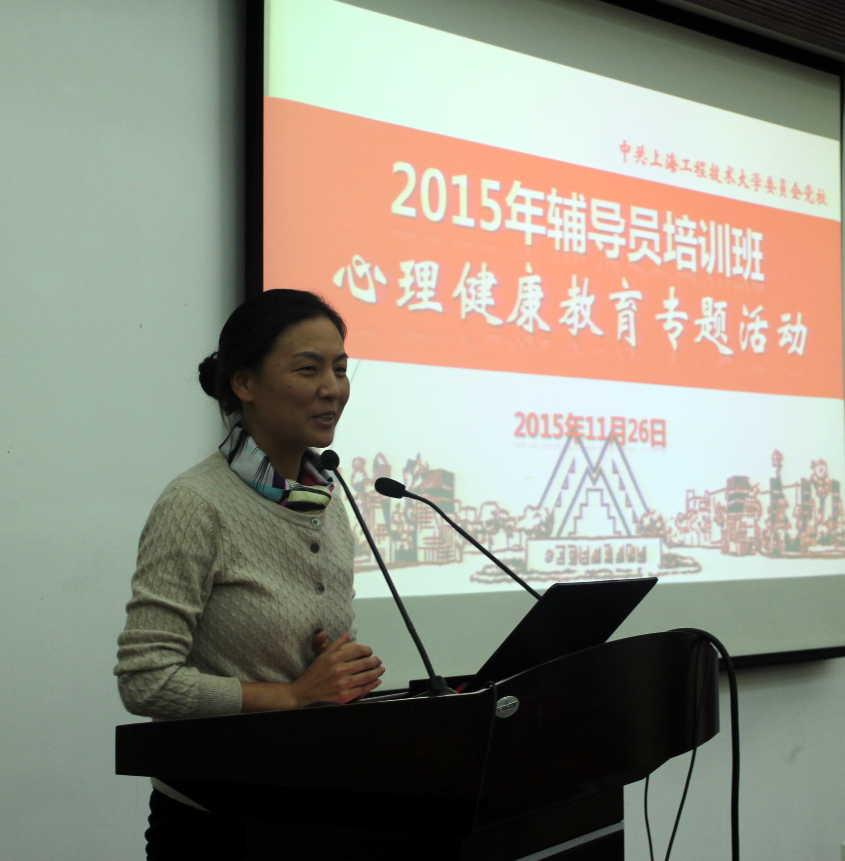 11月26日下午,辅导员培训班在图文信息中心第三报告厅,举行了“心理健康教育经典案例交流”专题培训。校党委副书记、副校长裴小倩、学生工作部(处)副处长严运楼、各学院党委、党总支副书记和全体辅导员出席了此次培训,我校医教结合合作单位松江区精神卫生中心陆爱军副主任医师受邀作为点评专家参加会议。