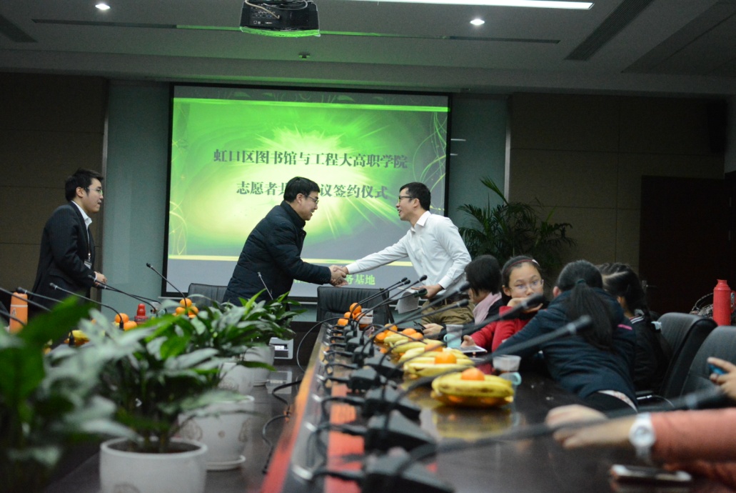 同时虹口图书馆张雄馆长代表虹口图书馆感谢学生志愿者们为图书馆所做的志愿活动并对学院、校志愿者提出了未来的展望,他希望高职学院、高级技校的志愿者们能不断弘扬奉献、友爱、互助、进步的志愿服务精神,同时也热烈欢迎学院、校的师生利用图书馆各方面资源,参与图书馆各项活动。