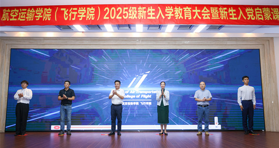 为加强理想信念教育,帮助新生尽快适应大学生活,9月9日,航空运输学院(飞行学院)在图文信息中心第二报告厅、航飞楼报告厅举行“程航启飞 逐梦云端”2025级新生入学教育大会暨新生入党启蒙课。校党委副书记、副校长徐阳,全国劳动模范、校友导师吴尔愉,上海市劳动模范、校友会理事、校友导师王俊,学院荣退院长何法江等应邀莅临大会。学院全体班子成员、系主任、新生班主任、辅导员及25级新生共同参加大会。大会由学院党委副书记戴振华主持。