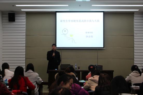 为提升研究生同学们的学术能力和水平,12月16日晚,管理学院在图书馆第四报告厅举办了管理学院第二期导师微讲堂活动。本期导师微讲堂邀请到管理学院李含伟副教授作为主讲嘉宾,就“研究生学术研究范式的小我与大我”进行详细讲解。