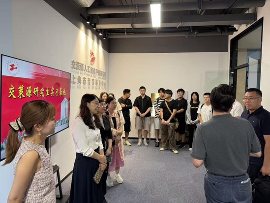 上海交策源研究生实习基地企业方负责人黄海华带领师生们参观了园区企业,通过现场走访,同学们不仅直观感受到人工智能与生物技术产业的发展前景,也加深了对多学科交叉融合在产业创新中所起关键作用的理解。