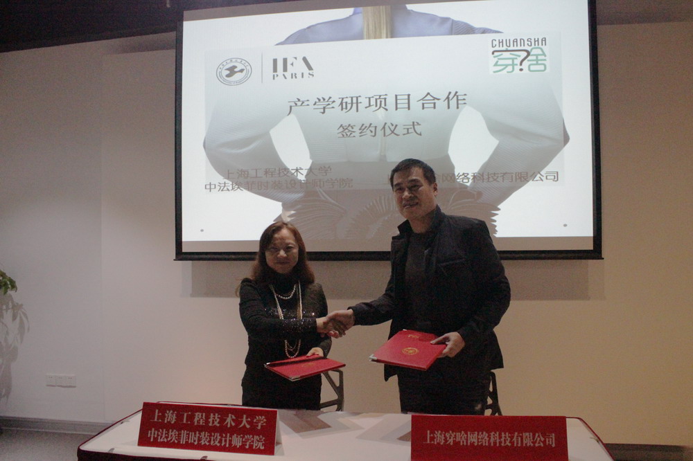 随着学院时尚教育品牌知名度的不断提升,学院每一年沙龙活动举办的形式不断创新。学院周晓鸣院长首先对学院发展的近况,向在座的新老企业朋友做了介绍。在学院青年设计师郭家琳老师和几位已经毕业的独立设计师的个人小型作品精彩秀演后,学院吴湘济副院长与吴江市芳慧纺织有限公司企业代表共同为院企双方建立的“图形联合创意设计中心”揭牌。随后,学院与上海穿啥网络科技有限公司,就共同培育孵化青年独立设计师未来发展创新平台建设,达成一定合作意向,签订协议。上海穿啥网络科技有限公司刚得到绍兴市人民政府巨资投入,公司董事长表示,将在2016年正式启动与学院多层次,多角度的实质性合作项目。