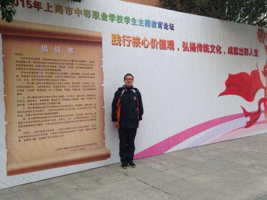 在高职学院、高级技校党委书记柳如荣和副院长、副校长许锦彪的关心指导下,一直备受各方关注的放弃重点高中读职校的2015级中本贯通班方天宇同学,于12月25日参加了由上海市中等职业学校德育研究会主办的主题为——《践行核心价值观,弘扬传统文化,成就出彩人生》的上海市中等职业学校学生主题教育论坛。