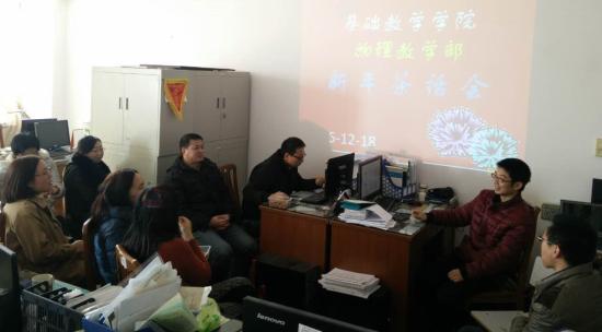 12月28日下午,数学教学部举行2016年元旦迎新座谈会。教学部全体教师参加了此次座谈会。本次座谈会由江开忠主任主持,围绕“总结2015,展望2016”展开讨论。在座谈中,大部分教师结合自己的工作实际谈了在形势下作为教师的心得体会以及在工作中面临的困难,同时,大家对教学部的发展和自身发展所遇到的困惑与意见建议进行了交流。江主任代表学校、学院向大家表达了新年祝福。