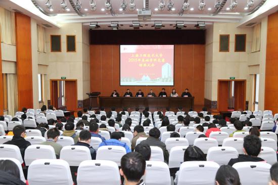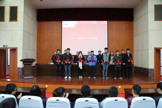 1月5日下午,我校2015年基础学科竞赛颁奖大会在行政楼B301会议室举行。副校长鲁嘉华、教务处副处长钱宇彬、基础教学学院党政班子成员、全体获奖学生及教师代表参加了大会。大会由基础教学学院院长张子厚主持。