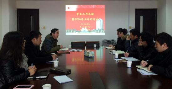 1月14日,汽车工程学院会议室展开了一场关于“如何有效开展学生工作”的头脑风暴会议。汽车工程学院党委副书记马建立老师组织学院各年级辅导员,对2015年度的学生工作进行了深入的总结,并以“学风建设”为主线,制定了2016年汽车工程学院学生工作的详细计划。