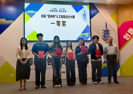 活动现场,上海松江高创源科技服务有限公司负责人吴义高介绍了泰晤士创业设计源的园区规划及所附有的政策支持。袁蓉为“富林杯”人工智能创新设计大赛的参赛选手颁奖。