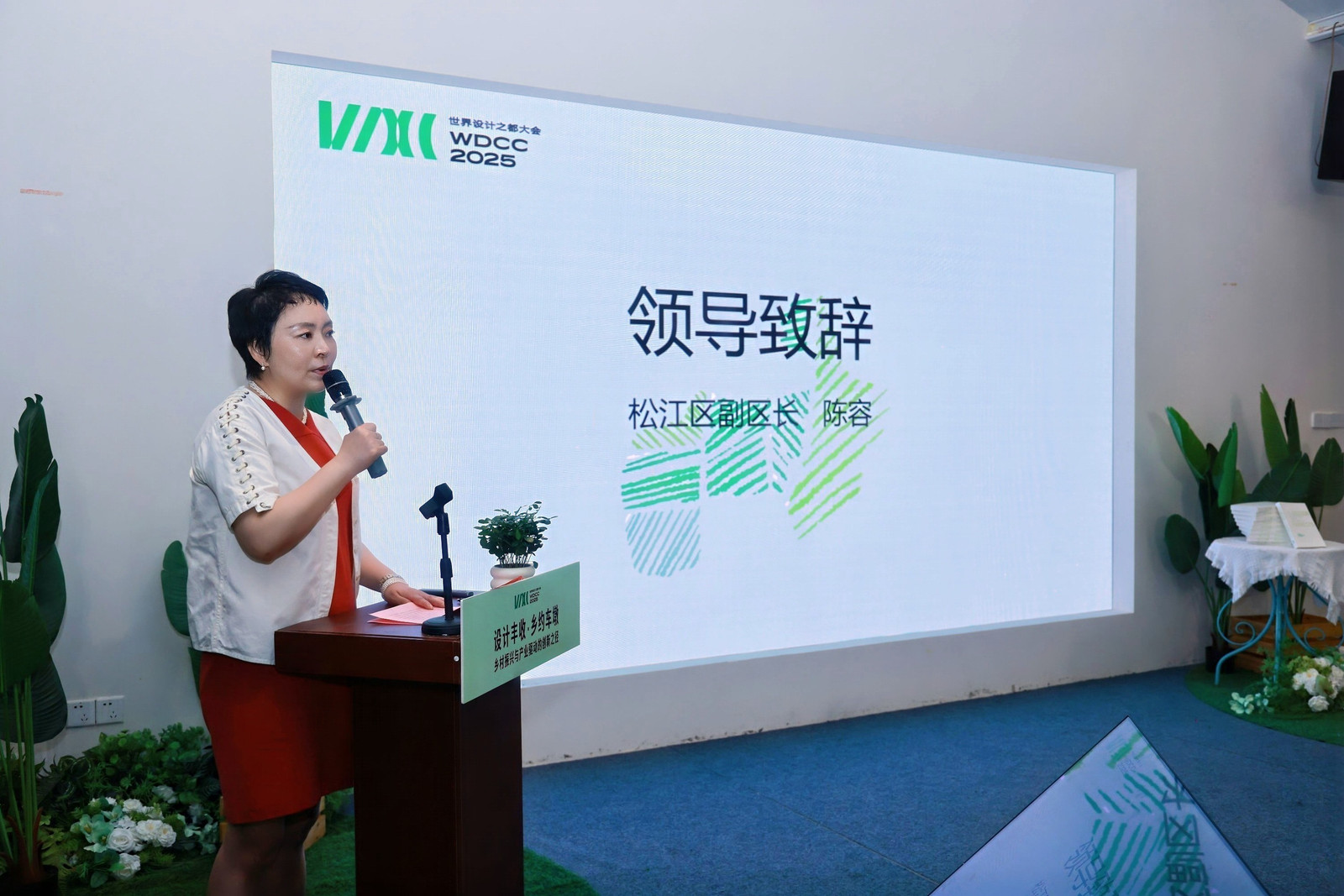 陈容副区长在致辞中表示,“设计丰收•乡约车墩”活动是设计创新与乡村振兴深度融合的松江实践,通过“设计+产业”“设计+生态”“设计+治理”“设计+资本”等多种形式,有效激发乡村内生动力,提升整体风貌与生活品质。她期待以此次活动为起点,汇聚更多智慧与力量,共同探索乡村振兴与产业融合的“松江样本”,让设计真正成为推动城乡高质量发展、促进共同富裕的重要引擎。