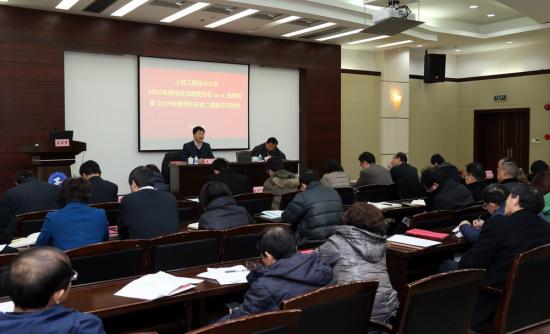校党委书记、校综治委主任李江在会上作了讲话。他首先对过去一年学校的安全稳定工作表示肯定,对各二级单位为保障校园平稳有序运行作出的辛勤努力表示衷心感谢。他在讲话中指出,新的一年是学校“十三五”规划的开局之年,综合治理工作要主动适应学校快速发展的形势,要坚决落实“一岗双责”,坚守“廉政”、“安全”两条底线不能突破。李江书记要求,各二级单位要从思想上高度重视安全稳定工作,在日常安全管理实践中要依法依规按制度办事,他在讲话中还重点对意识形态领域的政治维稳工作及大学生安全稳定工作提出了具体要求。