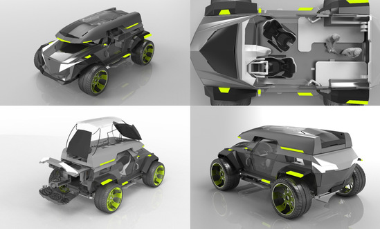 “Sirius”城市郊游SUV为热爱旅行的家庭而设计。车辆的轮胎向四角和外侧移动,更大程度释放了车辆内部空间,车辆顶部的拓展背包纵向延长,可以通过控制转变成可移动小型帐篷。底盘较传统SUV车型略有升高,增加其越野性能。为了使其能够兼顾城市通勤以及日常出行的需求,顶部的拓展背包可以自由拆卸或者选配其他配件。