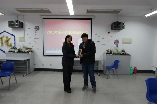 在2014级和2015级班干部的组织下,迎新茶话会融合了才艺展示、游戏和年度抽奖等多个环节,趣味性十足。王烨颖同学送了一首《过火》,预祝大家新年红红火火;袁红和罗健同学合唱《十年》,希望同学们的友情常在;张震东和夏楠这对师兄师弟的组合献上了一曲《最美》,赢得现场最热烈的掌声。游戏环节时,研究生们参赛热情高涨,每对组合都摩拳擦掌,他们活力无限,出色的表现引得全场笑声不断。最激动人心的时刻非抽奖环节莫属,刘宇虹书记为大家抽取了现场一等奖的幸运儿,同时她向全体研究生表达了学院的希望与愿景,期待大家可以在新的一年,硕果累累,勇攀高峰。