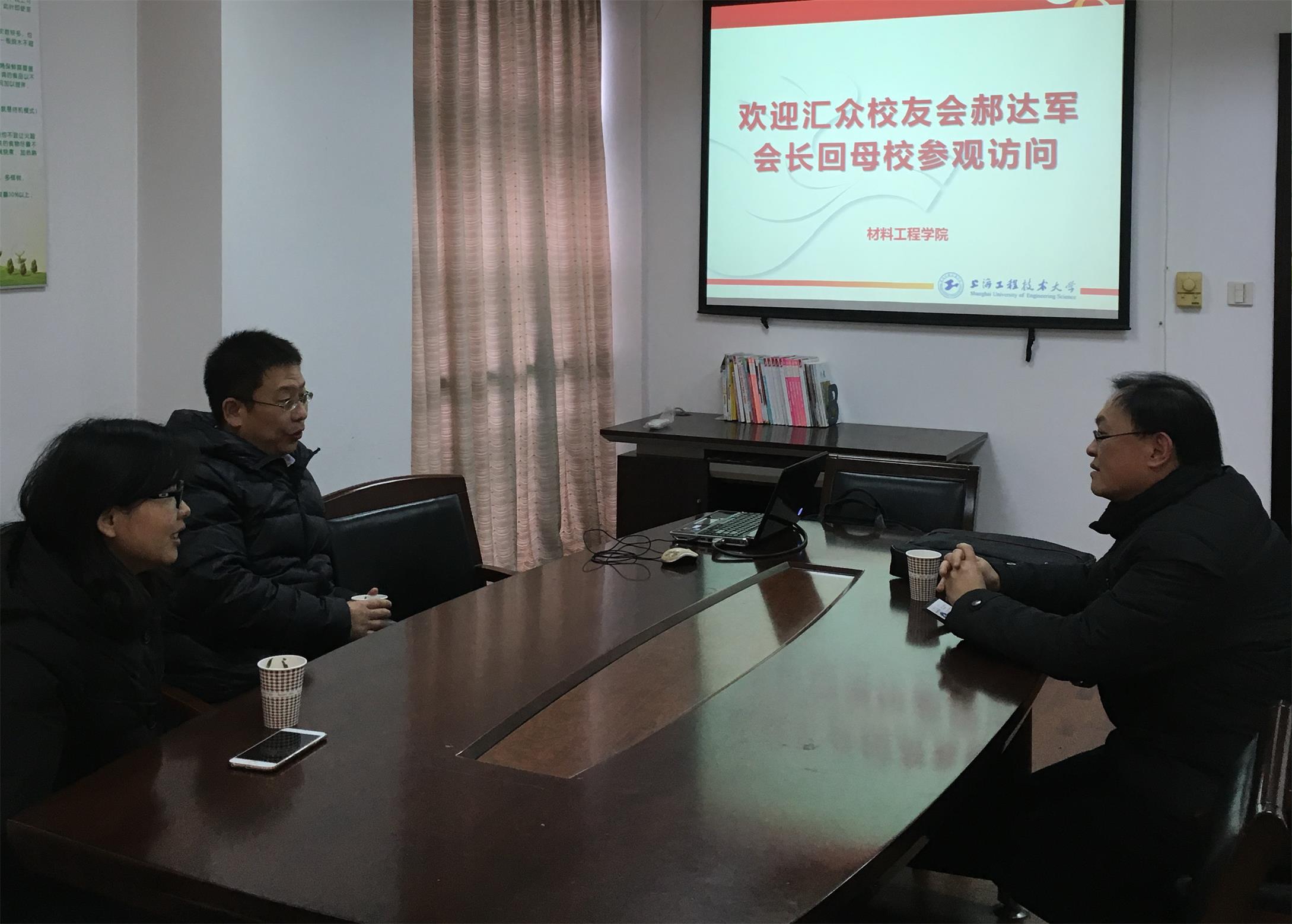 1月21日下午,材料工程学院90届校友、学院校友会上海汇众汽车制造有限公司分会会长、现上海汇众汽车制造有限公司技术中心党委书记兼副主任郝达军回母校参观,学院党委书记陆展华、副书记段海霞、副院长李军教授与郝会长进行了亲切的交流,并陪同其到实验室参观。