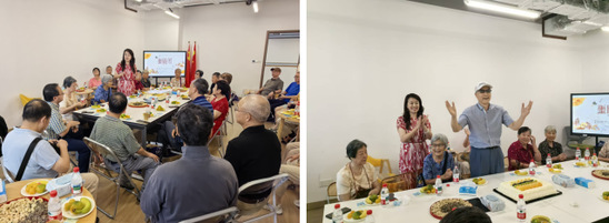 继教产业联合党总支书记袁蓉,继续教育学院吴刚、张玮与公诚公司彭文豪老师分别向老同志们汇报了学院发展、校园建设、校企合作项目等发展亮点。老同志们对学院和公司取得的成就表示由衷欣慰。今天的活动恰逢皋德煌老师七十岁生日,大家纷纷送上歌声与祝福为他庆生。
