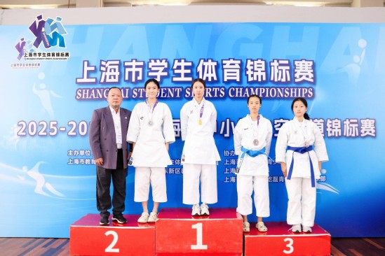 本次锦标赛由上海市教育委员会主办,是本市级别最高、规模最大的中小学生空手道赛事,吸引了全市近600名学子参与角逐。在代表空手道精髓与美感的“个人型”项目中,罗卿格同学将日语的专注与空手道的刚柔并济完美融合。赛场上,她动作标准流畅,气势十足,以富有感染力的表现征服了裁判,最终将冠军奖杯收入囊中。