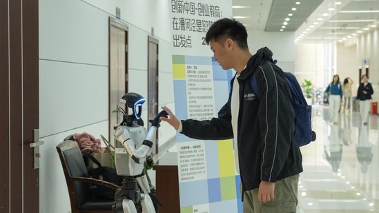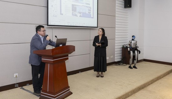 10月29日下午,在图文信息中心第四报告厅内,人形机器人助教小C正在为同学们介绍今天的课程内容,这并非科幻电影场景,而是通识教育中心特色课程《创新中国——创业教育》系列课程中的真实一幕。