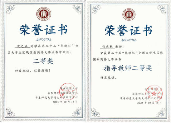 近日,第二十届中国日报“华澳杯”全国大学生区域国别英语大赛落下帷幕,航空运输学院沈之涵同学荣获全国二等奖,外国语学院张忠魁老师获得“优秀指导老师”称号。