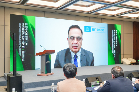 夏泽翰(Shahbaz Khan)在视频致辞中指出,科学是构建可持续未来的关键桥梁,呼吁全球各界加强合作,推动知识共享与科技协同,共同应对气候变化与生态危机。