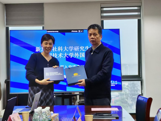 11月5日,新加坡社科大学研究生院来访,与外国语学院在行政楼1508开展交流会晤。新加坡社科大学研究生院副院长王文美、招生办主任薛田,数理外国语联合党委书记张朝民、外国语学院副院长杜丽娟及学院师生代表参会。