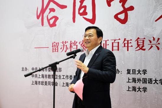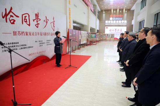 史健勇副书记代表学校对市委统战部、市教卫工作党委、市欧美同学会和区委统战部对学校承展给予的指导和支持表示感谢。他表示,本次活动是“党史”学习教育的重要内容,在建党一百周年之际回顾“留苏”历史将帮助大家更加深入理解坚守党的初心和使命之重要,用党的奋斗历程和伟大成就鼓舞斗志、明确方向,通过这次展览,让更多学生感受到为党留学、为国留学、为梦留学的初心信仰。