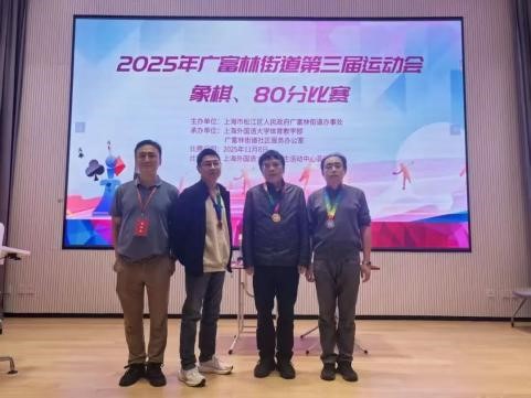 近日,上海市松江区广富林街道第三届运动会象棋和80分升级比赛在上海外国语大学举办。本次赛事由上海市松江区人民政府广富林街道办事处主办,吸引了来自上海外国语大学、上海工程技术大学、御上海居委会等单位的56名选手同场竞技,切磋技艺。我校教职工象棋团队在本次比赛中摘得单人赛、团队赛桂冠。