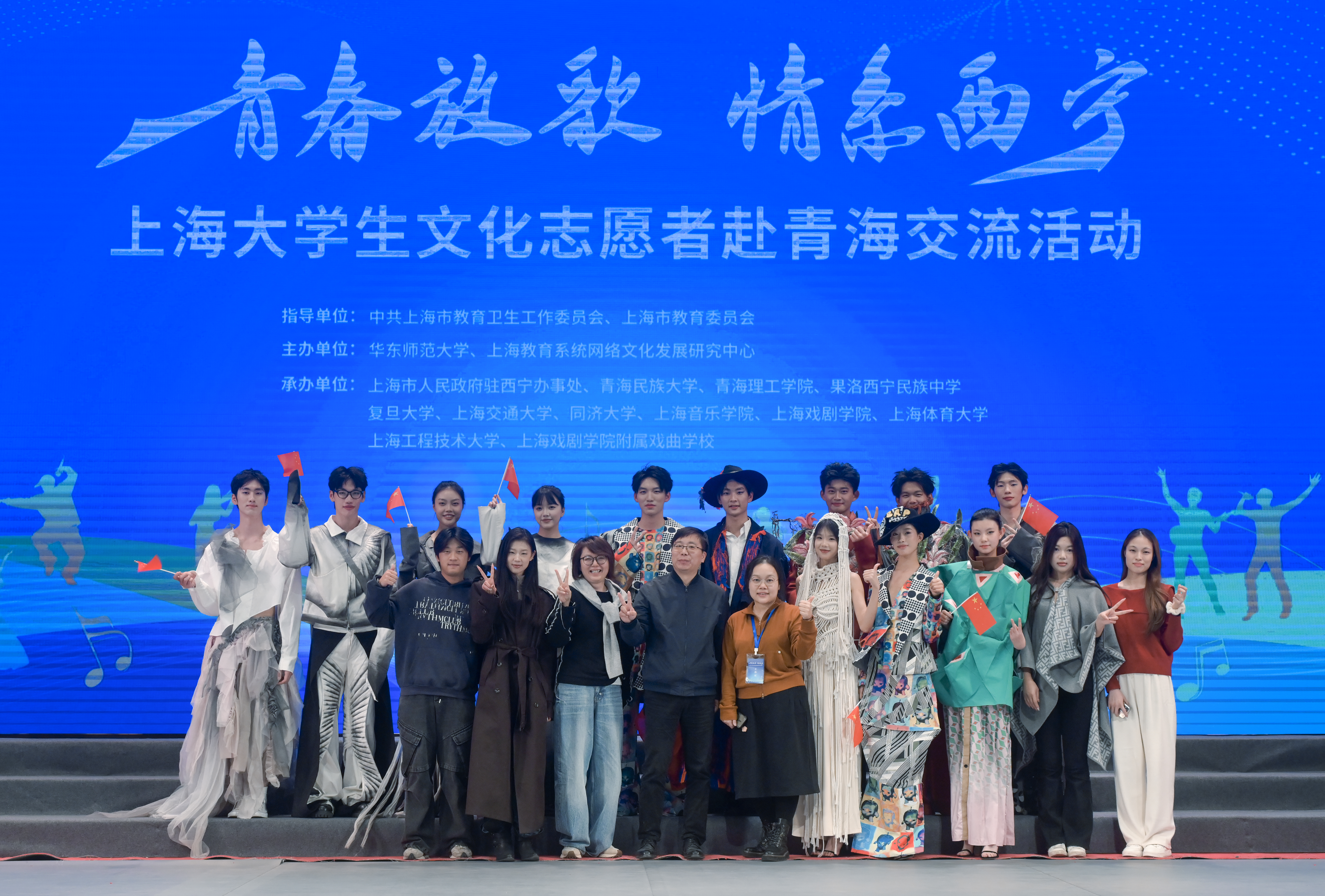 11月12-14日,“青春放歌 情系西宁”上海大学生文化志愿者赴青海交流活动在西宁举办,活动分别在果洛西宁民族中学、青海民族大学开展。本次活动由中共上海市教育卫生工作委员会、上海市教育委员会指导,华东师范大学上海教育系统网络文化发展研究中心主办,复旦大学、上海交通大学、上海工程技术大学等共同承办。我校表演专业学生带来的时装秀《风尚启程·织回西宁》惊艳全场,秀后沪青学子间别开生面的服饰交流,更让海派创意与藏族风情碰撞出绚丽火花。
