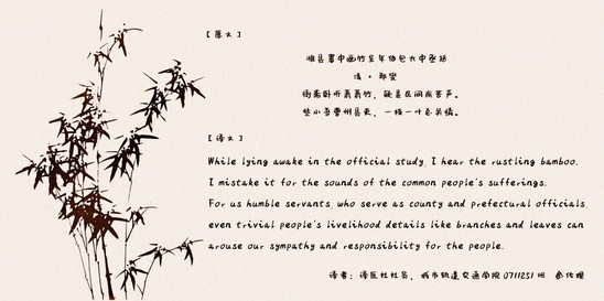 联合党委通过学院微信公众号广而告之,通过党支部组织教师,通过学生社团译匠社组织广大学生一起在双语转换中深刻感悟古人廉洁修身、齐家理政的智慧,强化廉洁自律意识,推动廉洁文化与中华优秀传统文化、翻译传播中国故事深度融合,营造“崇廉、尚廉、守廉”的廉洁氛围。