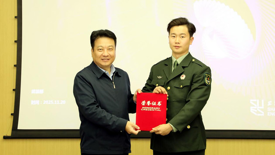 会上举行了退役军人服务站站长聘任仪式。徐阳为退役军人服务站站长、机械与汽车工程学院韩扬同学颁发聘书。韩扬表示,将肩负起光荣使命,带领服务站团队切实建设好、运行好退役军人服务站,为退伍学生提供有力保障。
