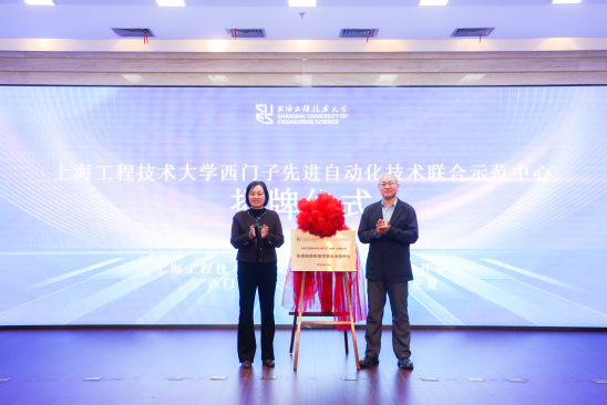 许开宇、左夏,李媛媛、孙作雷分别为上海工程技术大学—西门子先进自动化技术联合示范中心、上海工程技术大学—西井科技人工智能联合创新实验室揭牌。